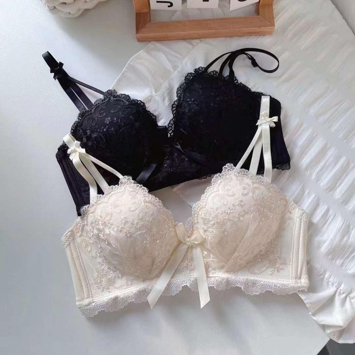 優寶購物《ubao.Tw》特貨品商城,黑貓宅配,取貨付款,刺繡蕾絲少女內衣小胸聚攏顯大無鋼圈胸罩舒適不空杯側收文胸套裝 | Yahoo拍賣