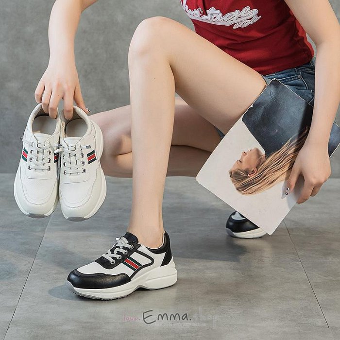 優寶購物《ubao.Tw》特貨品商城,黑貓宅配,取貨付款,EmmaShop艾購物-韓國同步上新-全真皮三線厚底免綁帶休閒鞋/老爹鞋/增高鞋 | Yahoo拍賣
