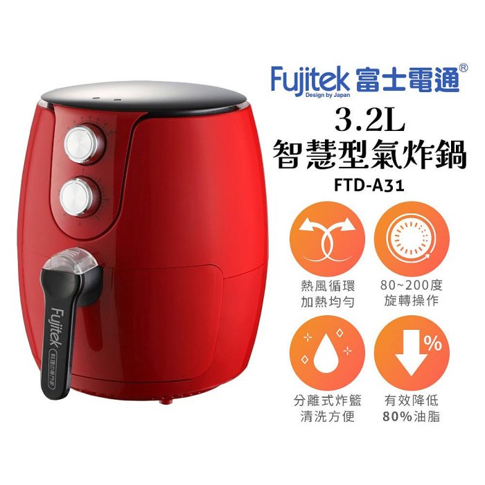 優寶購物《ubao.Tw》特貨品商城,黑貓宅配,取貨付款,【Fujitek富士電通】 3.2L大容量智慧型氣炸鍋 FTD-A31 | Yahoo拍賣