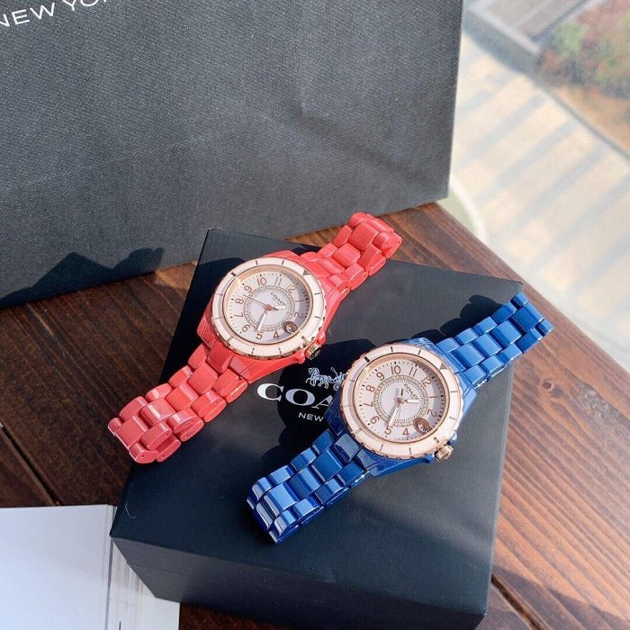 優寶購物《ubao.Tw》特貨品商城,黑貓宅配,取貨付款,代購COACH 新款女士陶瓷手錶 紅色/藍色錶帶 新穎獨特 | Yahoo拍賣