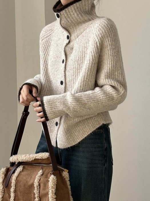 優寶購物《ubao.Tw》特貨品商城,黑貓宅配,取貨付款,‼️限時特價$699‼️【CHERRY LALA 日韓】實拍。24冬。撞色翻领 单排扣 開衫針織 宽松慵懒 毛衣外套-四色 P2480 | Yahoo拍賣