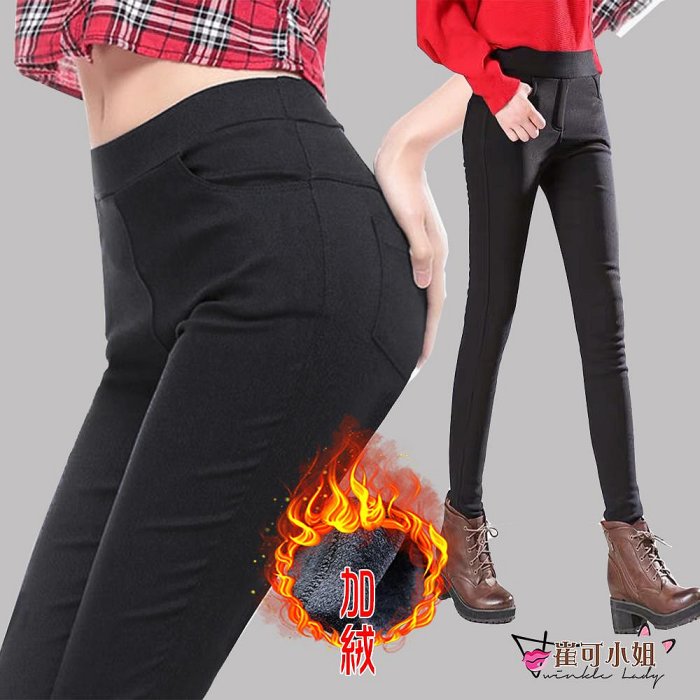 優寶購物《ubao.Tw》特貨品商城,黑貓宅配,取貨付款,【崔可小姐】 雪地加厚 刷絨時尚 簡約素面 修身顯瘦四口袋 窄管褲 休閒九分 長褲 胖妹妹 大尺碼【EP0013】 | Yahoo拍賣