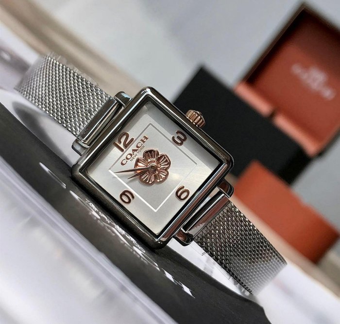 優寶購物《ubao.Tw》特貨品商城,黑貓宅配,取貨付款,COACH Cass 銀白色方型錶盤 銀色不鏽鋼編織錶帶 石英 女士手錶 14503697 | Yahoo拍賣