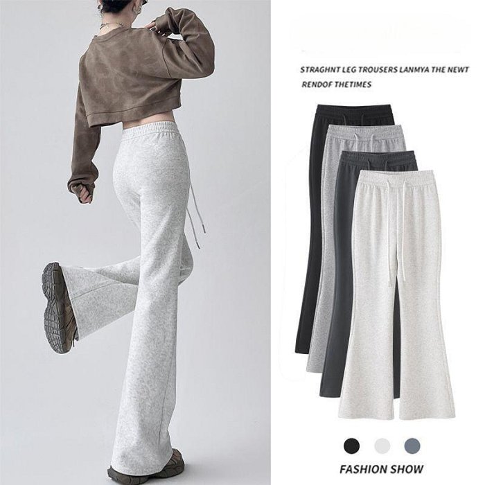 優寶購物《ubao.Tw》特貨品商城,黑貓宅配,取貨付款,新款修身顯瘦微喇叭褲 女生高腰休閒運動褲子 抽繩係帶衛褲 | Yahoo拍賣