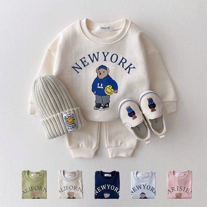 優寶購物《ubao.Tw》特貨品商城,黑貓宅配,取貨付款,男嬰女童衣服套裝熊長袖休閒連帽衛衣運動衫+褲子 2 件套運動套裝 | Yahoo拍賣