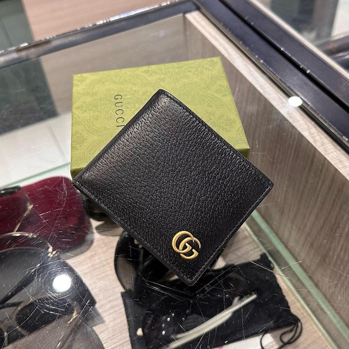 優寶購物《ubao.Tw》特貨品商城,黑貓宅配,取貨付款,⭐️ 香榭屋精品店 ⭐️ GUCCI 428726 黑色牛皮金釦八卡對開短夾 皮夾 (W2346) 未使用商品 | Yahoo拍賣