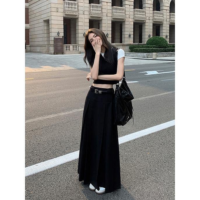 優寶購物《ubao.Tw》特貨品商城,黑貓宅配,取貨付款,F&X超長洋裝黑色半身裙女春秋夏新款韓高腰顯瘦百褶裙設計感a字西裝長裙個性工裝丹寧(满599免運) | Yahoo拍賣