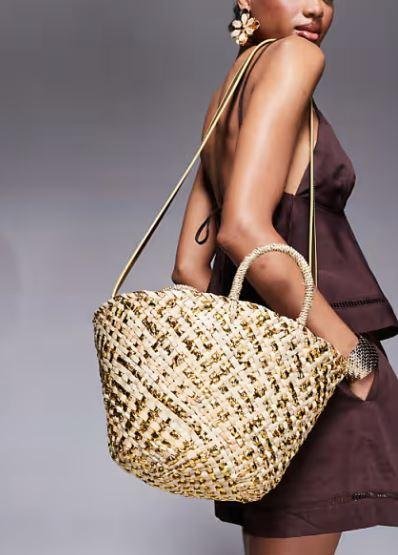 優寶購物《ubao.Tw》特貨品商城,黑貓宅配,取貨付款,奇露代購South Beach熱帶南洋奢華渡假風交錯編織包籃子包(金銀擇一) | Yahoo拍賣