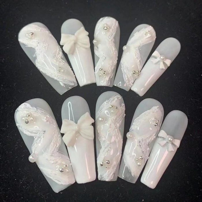 優寶購物《ubao.Tw》特貨品商城,黑貓宅配,取貨付款,純手工穿戴甲手繪飄帶法式白色蝴蝶結高級感純欲款可拆卸美甲片 指甲貼/美甲貼/穿戴甲片 | Yahoo拍賣