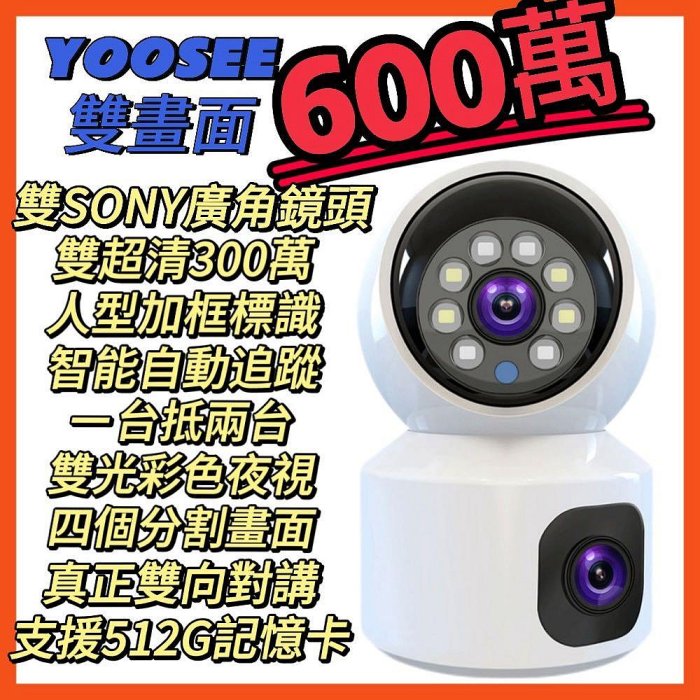 優寶購物《ubao.Tw》特貨品商城,黑貓宅配,取貨付款,YOOSEE雙鏡頭600萬旗艦版監視器 自動追蹤 彩色夜視 攝像機 AP熱點 WIFI 記憶卡 監控 攝影機 鏡頭攝像頭 | Yahoo拍賣