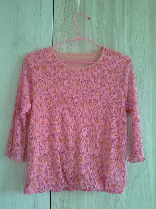 優寶購物《ubao.Tw》特貨品商城,黑貓宅配,取貨付款,雪紡粉底碎花圓領彈性壓摺紋路花苞五分袖上衣 | Yahoo拍賣