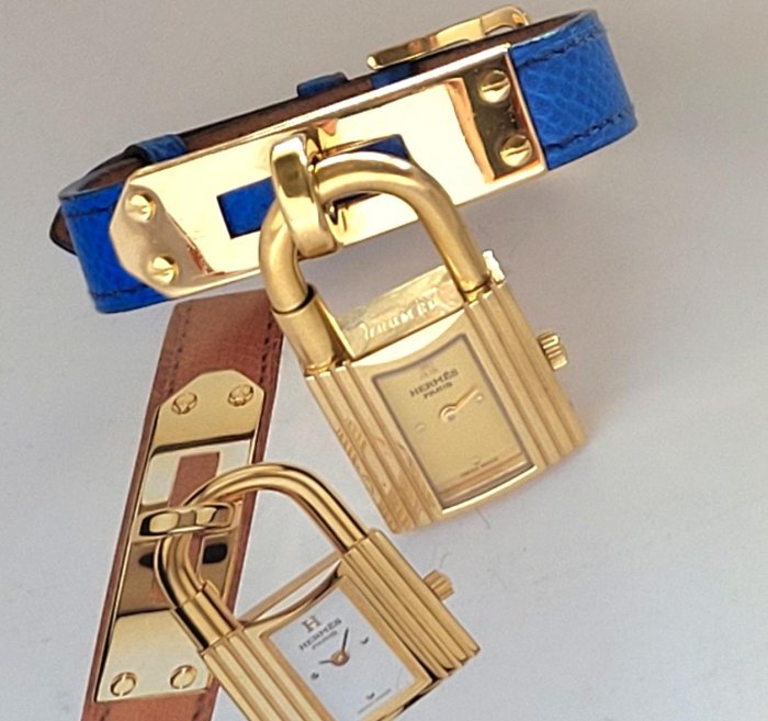 優寶購物《ubao.Tw》特貨品商城,黑貓宅配,取貨付款,~HERMES KELLY 附原廠盒 金色手錶藍色皮帶 石英錶 | Yahoo拍賣