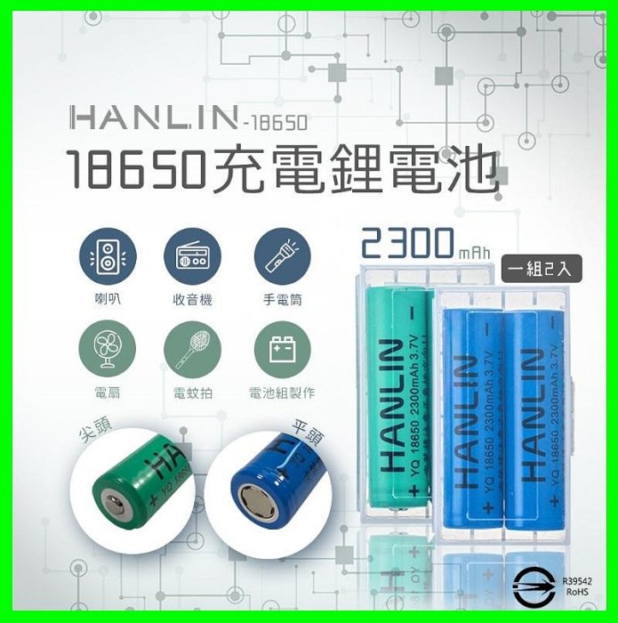 優寶購物《ubao.Tw》特貨品商城,黑貓宅配,取貨付款,HANLIN-18650電池 2300mah (一組2顆) 通過認證 充電電池 尖頭 平頭 風扇電池 環保電池 送收納盒 | Yahoo拍賣