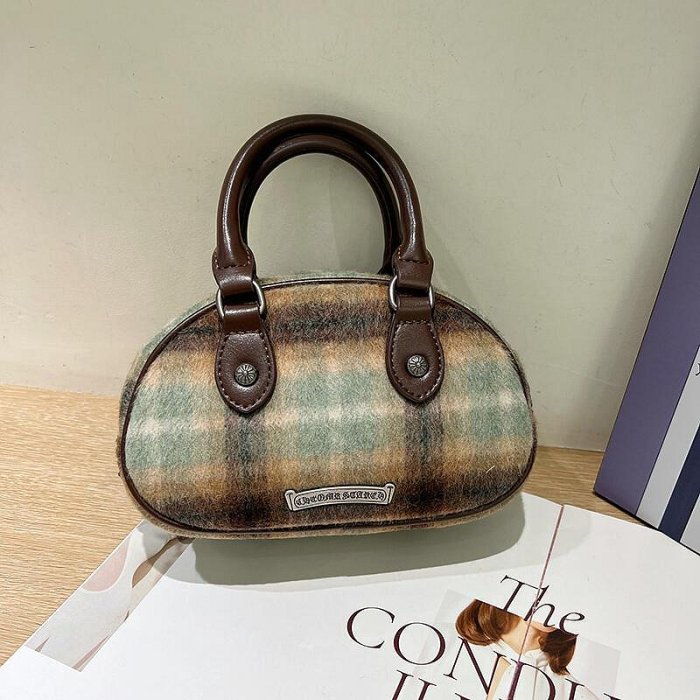 優寶購物《ubao.Tw》特貨品商城,黑貓宅配,取貨付款,【熱銷】復古小眾毛呢格子保齡球包手提貝殼包女2023秋冬新款時髦斜挎包 | Yahoo拍賣