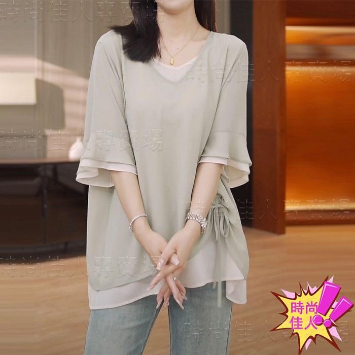 優寶購物《ubao.Tw》特貨品商城,黑貓宅配,取貨付款,時尚佳人=歐洲站高檔七分袖雪紡衫大碼女裝遮肉遮胯寬松透氣小 | Yahoo拍賣