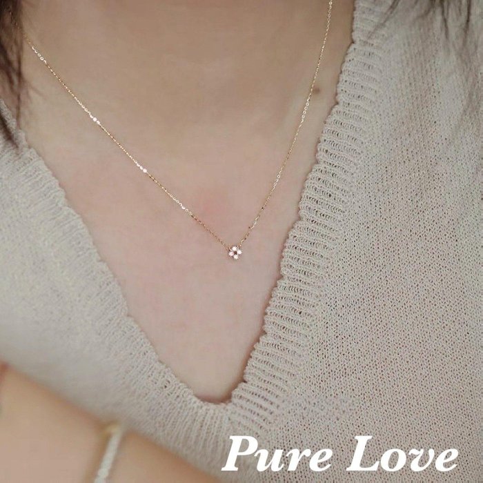 優寶購物《ubao.Tw》特貨品商城,黑貓宅配,取貨付款,Pure Love樂芙 / 正韓 【N01041】韓系簡約S925純銀MINI十字鋯石小花鎖骨鏈 短項鏈 / 金 | Yahoo拍賣