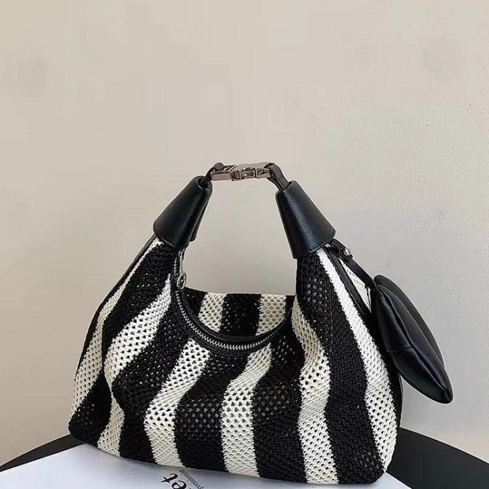 優寶購物《ubao.Tw》特貨品商城,黑貓宅配,取貨付款,夏。小眾設計高冷風 大容量 兩種包型黑白撞色鏤空編織餃子包手拎斜背單肩包-Euphoria Store | Yahoo拍賣