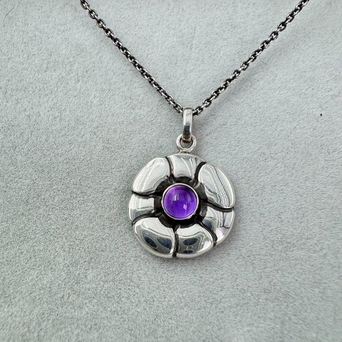 優寶購物《ubao.Tw》特貨品商城,黑貓宅配,取貨付款,喬治傑森紫水晶吊墜配黑Chain,925純銀花形,精美合盒,黑Old工藝,適合收藏吊飾 紫寶石 吊墜花紋 | Yahoo拍賣