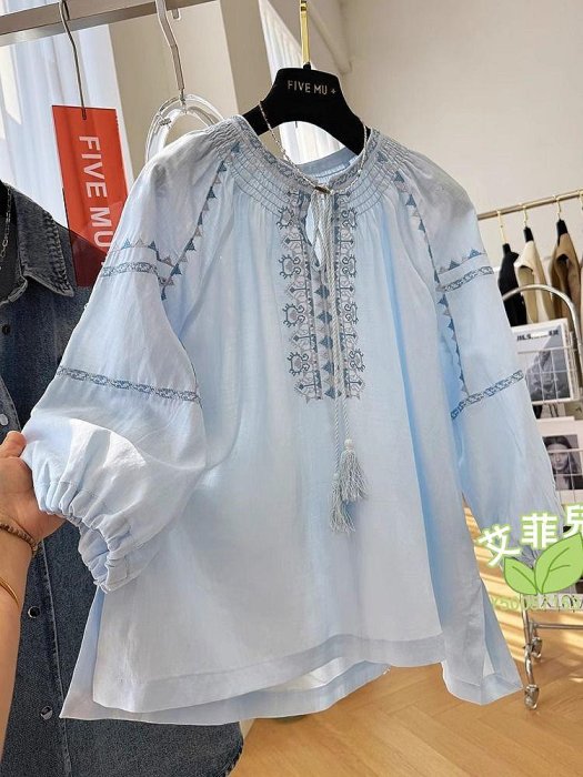 優寶購物《ubao.Tw》特貨品商城,黑貓宅配,取貨付款,艾菲兒= 高級感新中式輕國風圓領七分袖襯衫女2025夏新款娃娃衫超好看上衣 | Yahoo拍賣