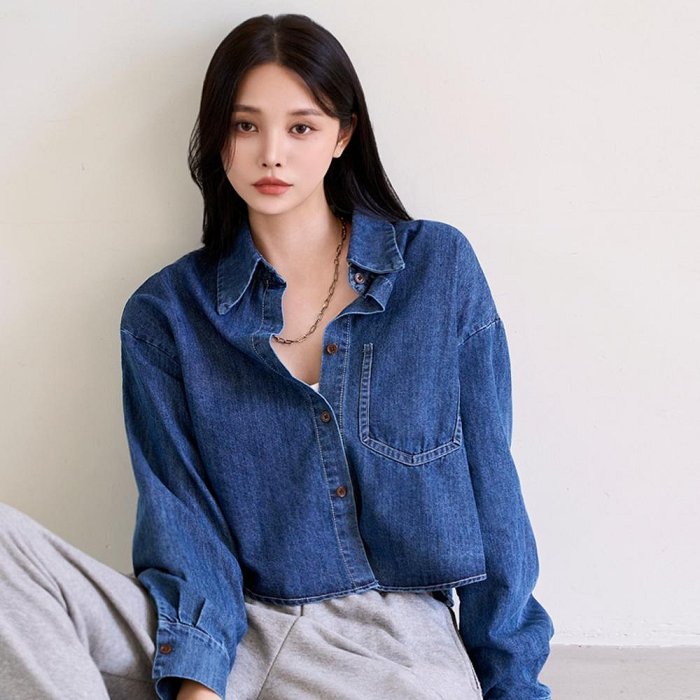 優寶購物《ubao.Tw》特貨品商城,黑貓宅配,取貨付款,Bellee 正韓 假口袋短版牛仔襯衫上衣 (2色) 【0923-45】 | Yahoo拍賣