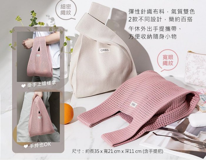 優寶購物《ubao.Tw》特貨品商城,黑貓宅配,取貨付款,厚實織紋 ORBIS針織手提袋(2入組) 粉 杏 2色 外出袋 手提袋 環保袋 全新 現貨 轉賣 | Yahoo拍賣