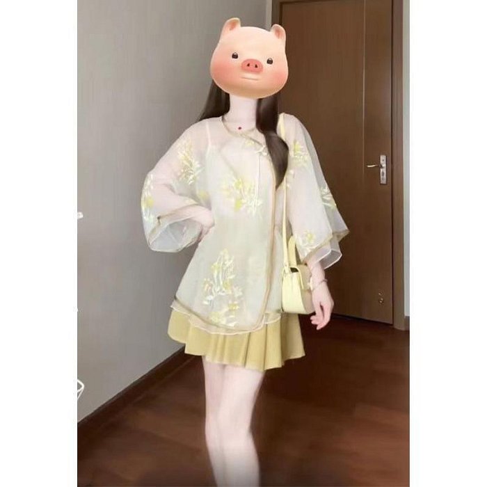 優寶購物《ubao.Tw》特貨品商城,黑貓宅配,取貨付款,大碼胖mm新中式中國風套裝刺繡襯衫上衣女裝半身裙夏季修身兩件套 | Yahoo拍賣