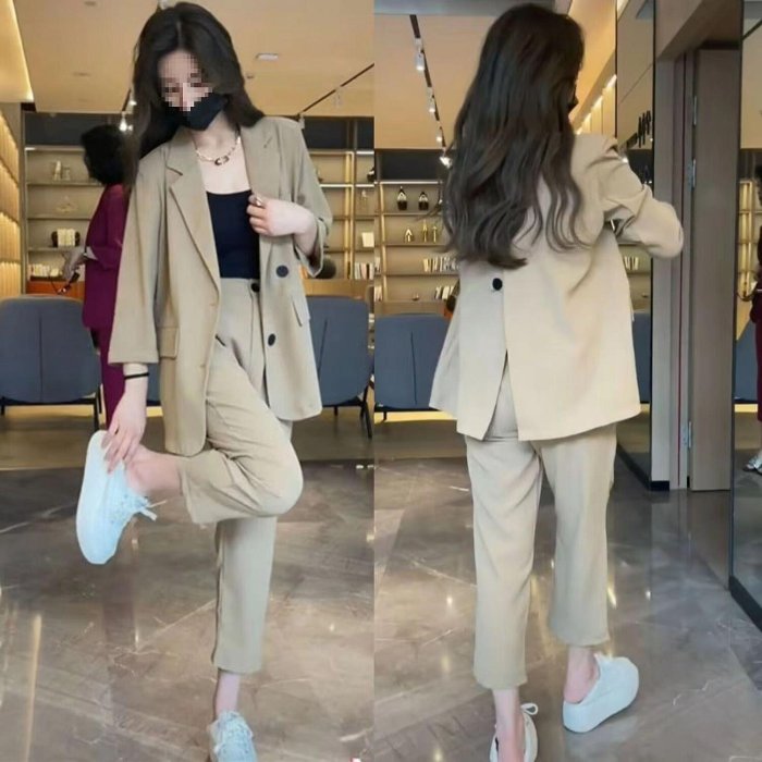 優寶購物《ubao.Tw》特貨品商城,黑貓宅配,取貨付款,胖斤西褲職業裝西服女秋大碼氣質休閑兩件套西裝套裝洋氣小香風款 | Yahoo拍賣