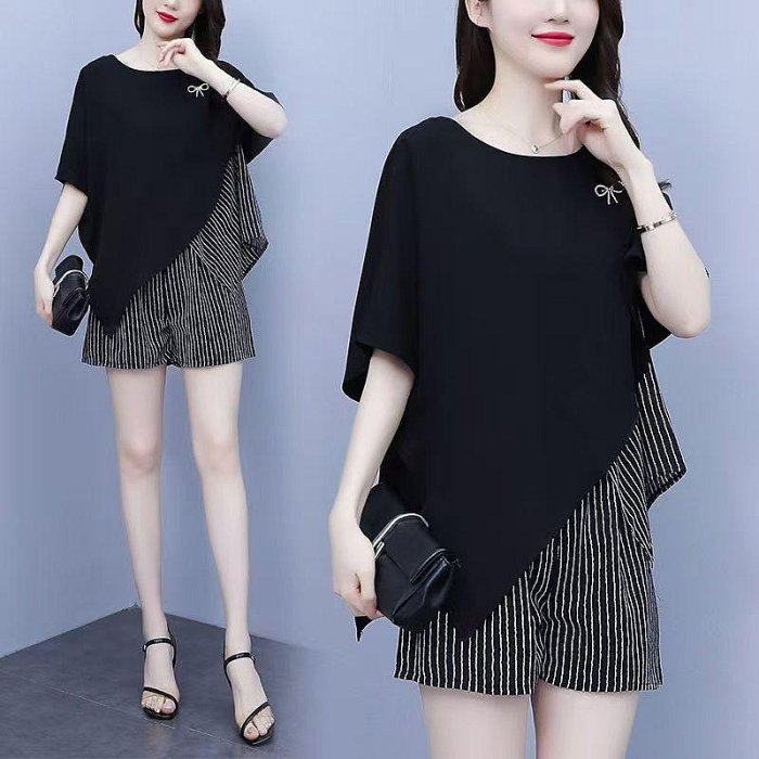 優寶購物《ubao.Tw》特貨品商城,黑貓宅配,取貨付款,大碼套裝女2025夏新款韓版時尚拼接寬松顯瘦氣質減齡遮肚子兩件套 | Yahoo拍賣