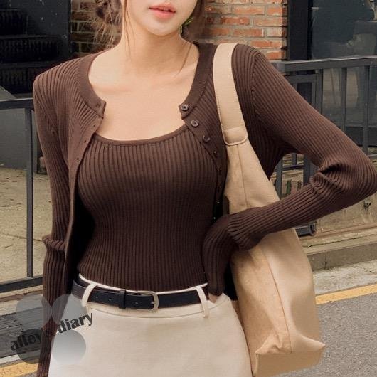 優寶購物《ubao.Tw》特貨品商城,黑貓宅配,取貨付款,輕熟時髦細肩帶背心+直紋針織外套套裝*正韓 韓國空運*艾莉韓衣 alley's diary!ad25101103【4色預購】 | Yahoo拍賣