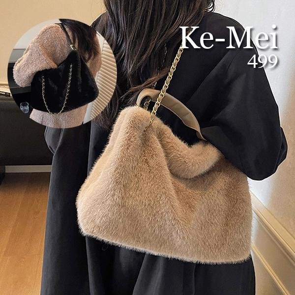 優寶購物《ubao.Tw》特貨品商城,黑貓宅配,取貨付款,克妹Ke-Mei【ZT21442】冬季爆款!歐洲站高級感皮草毛毛小香金屬鍊大方包 | Yahoo拍賣