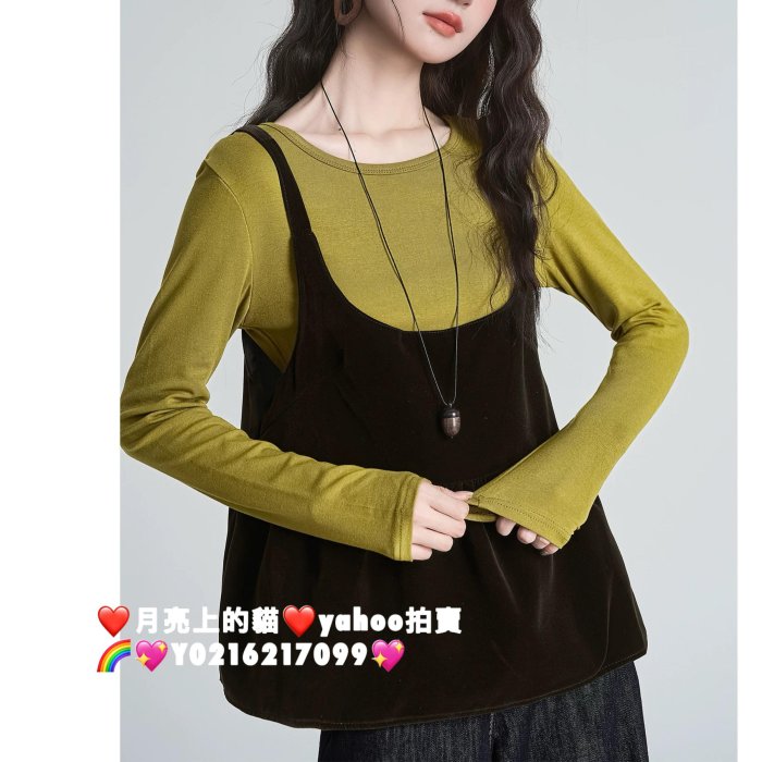 優寶購物《ubao.Tw》特貨品商城,黑貓宅配,取貨付款,❤月亮上の貓❤絕美輕潮出街~上身超美や好品質~秋冬の時尚百搭超好看寬鬆舒適顯白顯瘦洋氣減齡咖色絲絨吊帶背心+圓領長袖T恤兩件套 別緻疊穿設計感兩件式套裝 | Yahoo拍賣