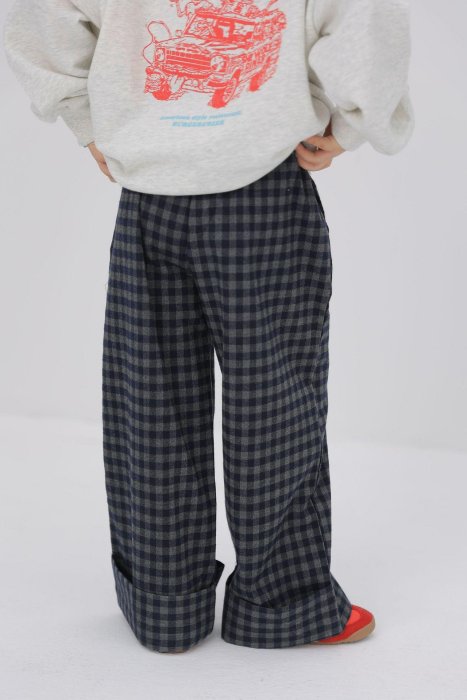 優寶購物《ubao.Tw》特貨品商城,黑貓宅配,取貨付款,山東:OZOC 本日限定 冬季格紋復古摺邊設計小孩兒童大人直筒褲251023 | Yahoo拍賣