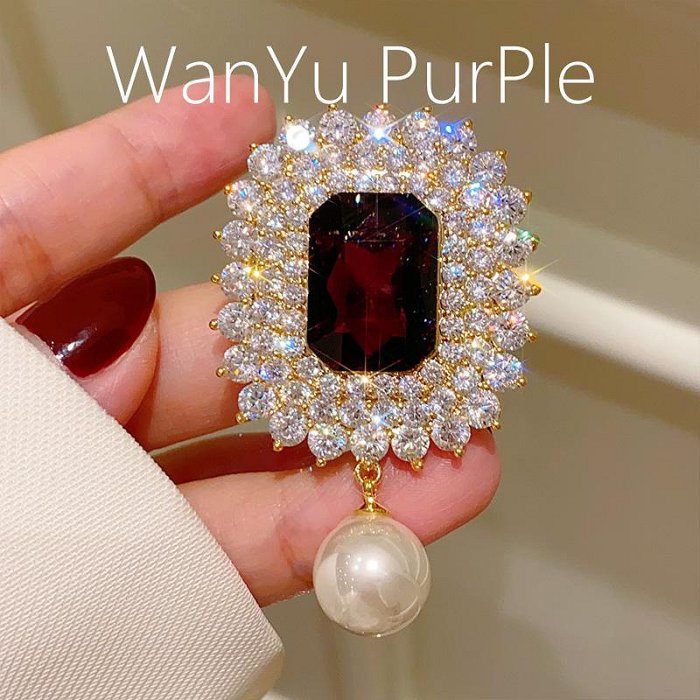 優寶購物《ubao.Tw》特貨品商城,黑貓宅配,取貨付款,爆款 高檔胸針 胸花 別針 歐美宮廷風復古暗紅色方形寶石珍珠胸針胸花優雅氣質西裝外套別針 高檔胸針 防走光別針 百搭配飾 WY037 | Yahoo拍賣