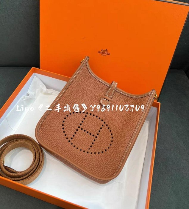 優寶購物《ubao.Tw》特貨品商城,黑貓宅配,取貨付款,二手出售 HERMES 愛馬仕eveiyne mini 金棕色 金扣 伊芙琳 斜挎包 肩背包 | Yahoo拍賣