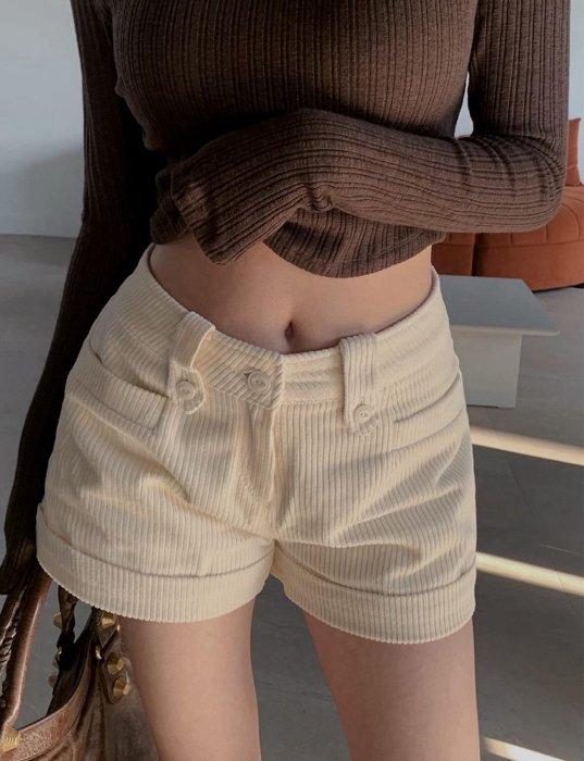 優寶購物《ubao.Tw》特貨品商城,黑貓宅配,取貨付款,正韓 韓國秋裝新款預購 腰釦燈芯絨短褲 米白/深棕/黑 SM | Yahoo拍賣