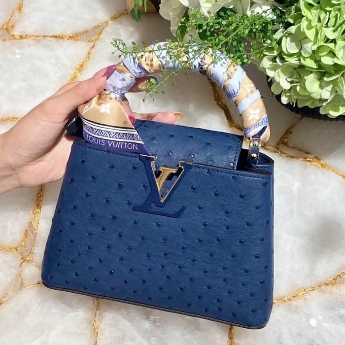 優寶購物《ubao.Tw》特貨品商城,黑貓宅配,取貨付款,嚴選 Lv Capucines 藝術藍鴕鳥皮手拿包 禮盒防塵搭配 小票手提裝配 /blue 黑 鹽巴皮 老氣優雅 半身長 手拿 包裝精美 | Yahoo拍賣
