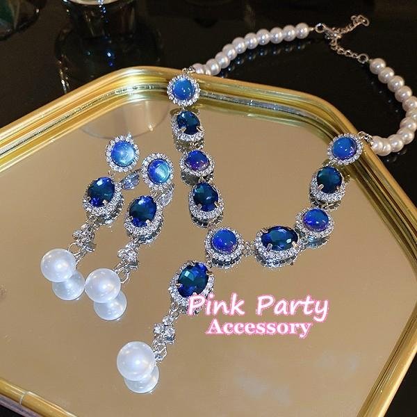 優寶購物《ubao.Tw》特貨品商城,黑貓宅配,取貨付款,【項鍊】法式藍色水晶水鑽珍珠水滴流蘇項鍊 耳環 新娘項鍊 PinkParty韓系飾品 | Yahoo拍賣
