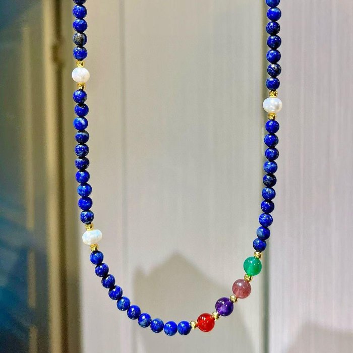 優寶購物《ubao.Tw》特貨品商城,黑貓宅配,取貨付款,全場免郵 手創精品 4mm天然青金石淡水珍珠紫水晶紅玉髓鎖骨鏈項鍊 F730386 | Yahoo拍賣