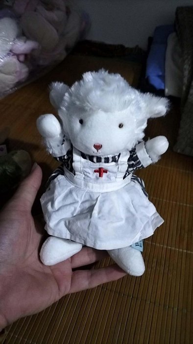 優寶購物《ubao.Tw》特貨品商城,黑貓宅配,取貨付款,嚴選Bunnies by the Bay護士小羊 白色毛絨面料 黑白條紋裙裝 經典紅十字設計 背部帶豆袋顆粒 雙肩背 九成新 黑白風潮 中古服飾 中古收 | Yahoo拍賣