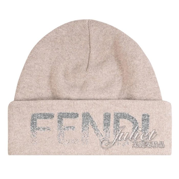 優寶購物《ubao.Tw》特貨品商城,黑貓宅配,取貨付款,【茱麗葉精品】全新商品 FENDI 專櫃商品 FXQ334 刷淡銀蔥LOGO羊毛混紡保暖毛帽.淺褐色 現貨 | Yahoo拍賣