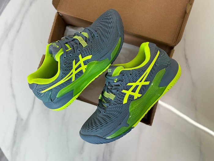 優寶購物《ubao.Tw》特貨品商城,黑貓宅配,取貨付款,A先生外貿優選 ASICS 亞瑟士 GEL-RESOLUTION 9 灰藍 熒光黃 法網配色 緩震 耐磨 網球鞋 運動鞋 男女鞋 | Yahoo拍賣