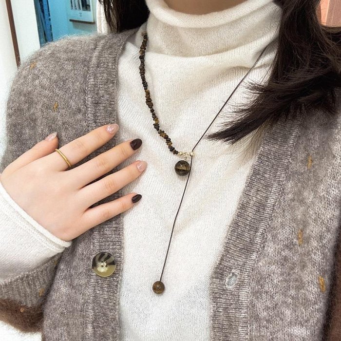 優寶購物《ubao.Tw》特貨品商城,黑貓宅配,取貨付款,{朵朵韓飾} C5481 韓國直送(正韓) 鈦鋼 個性氣質美拉德不規則虎眼石串珠抽拉長款項鍊 | Yahoo拍賣