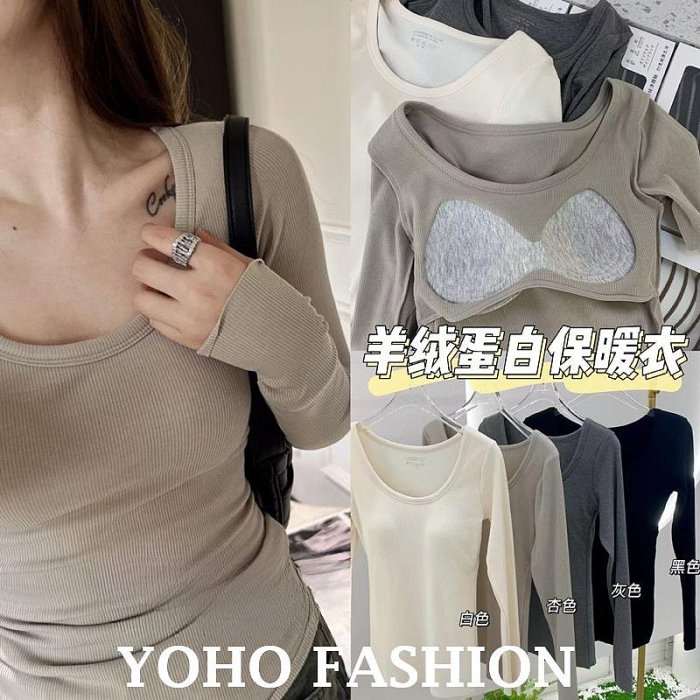 優寶購物《ubao.Tw》特貨品商城,黑貓宅配,取貨付款,【現貨】新品特價199YOHO 羊絨蛋白磨毛發熱衣 實拍秋冬彈力保暖一體式罩杯長袖磨毛發熱衣 打底衫 (DFN8792) | Yahoo拍賣