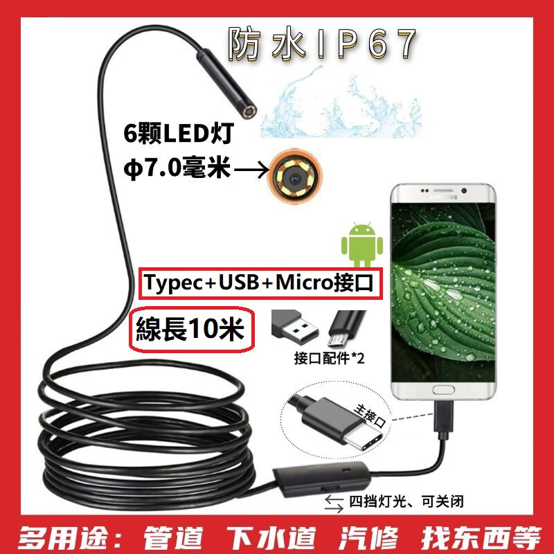 【線長10米】手機USB內窺鏡長線攝像頭下水道外接射像頭探頭可視探頭管道